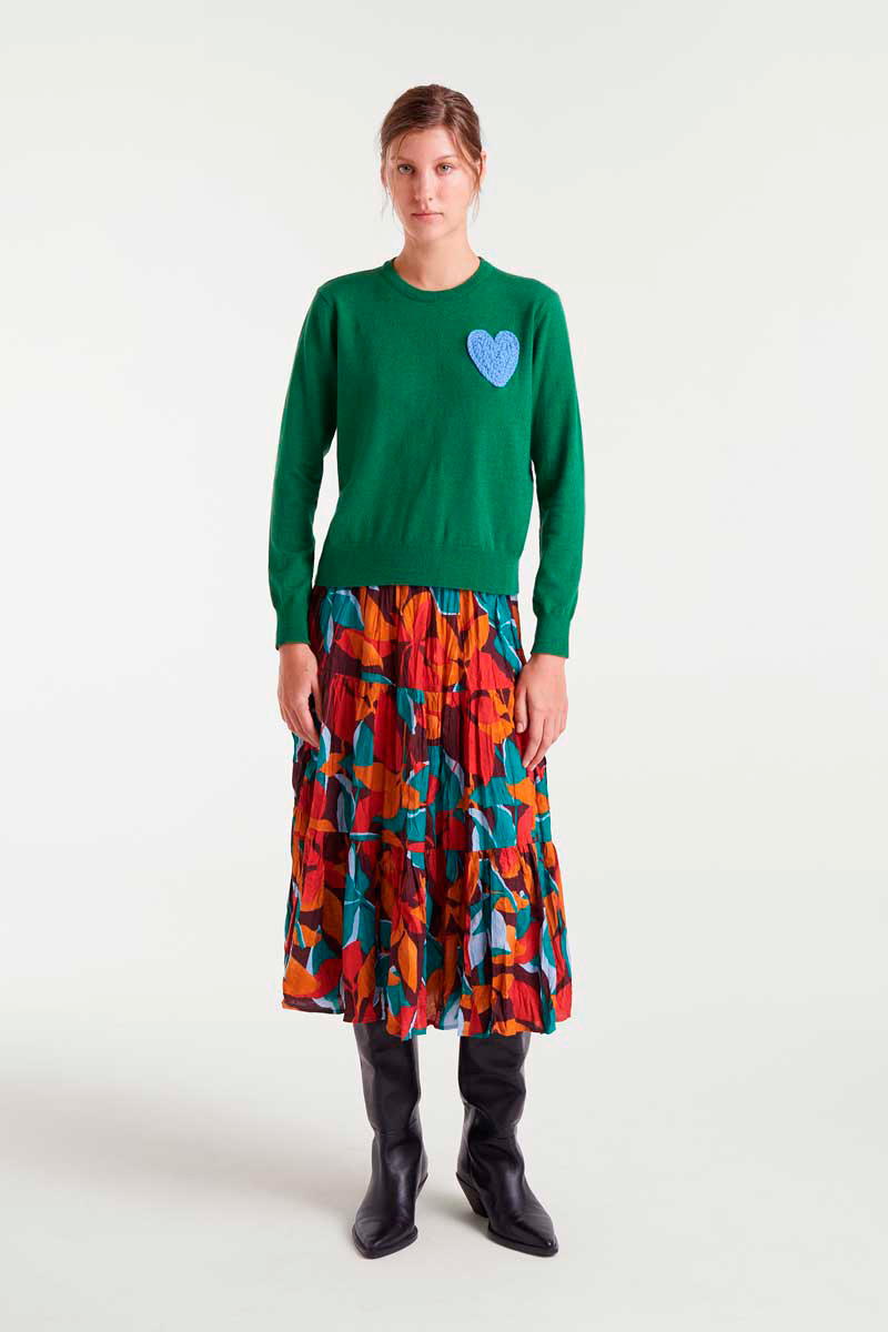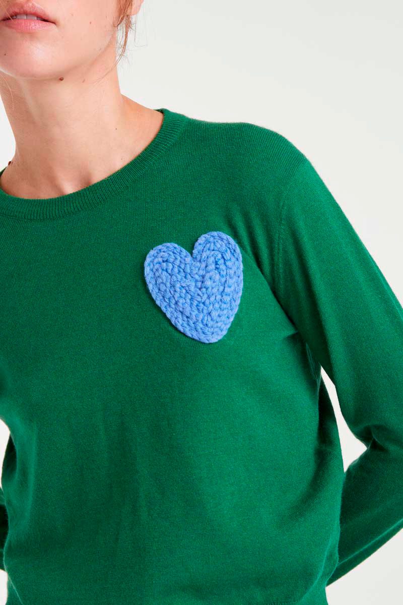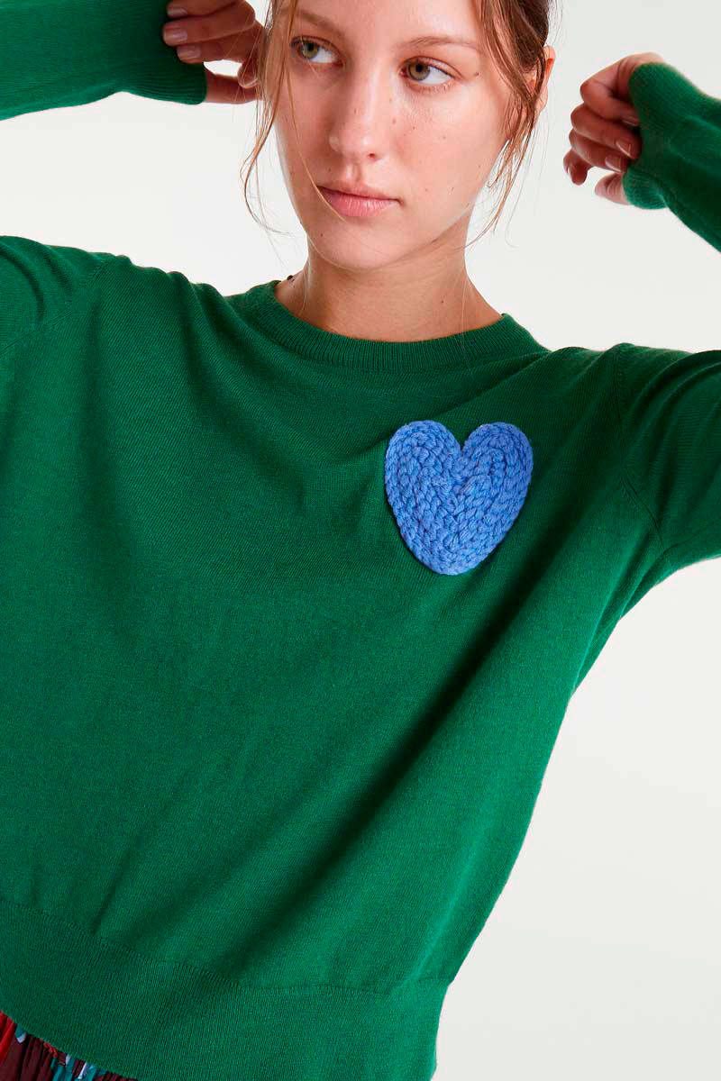 JERSEY DE PUNTO VERDE CON PRINT DE CORAZÓN