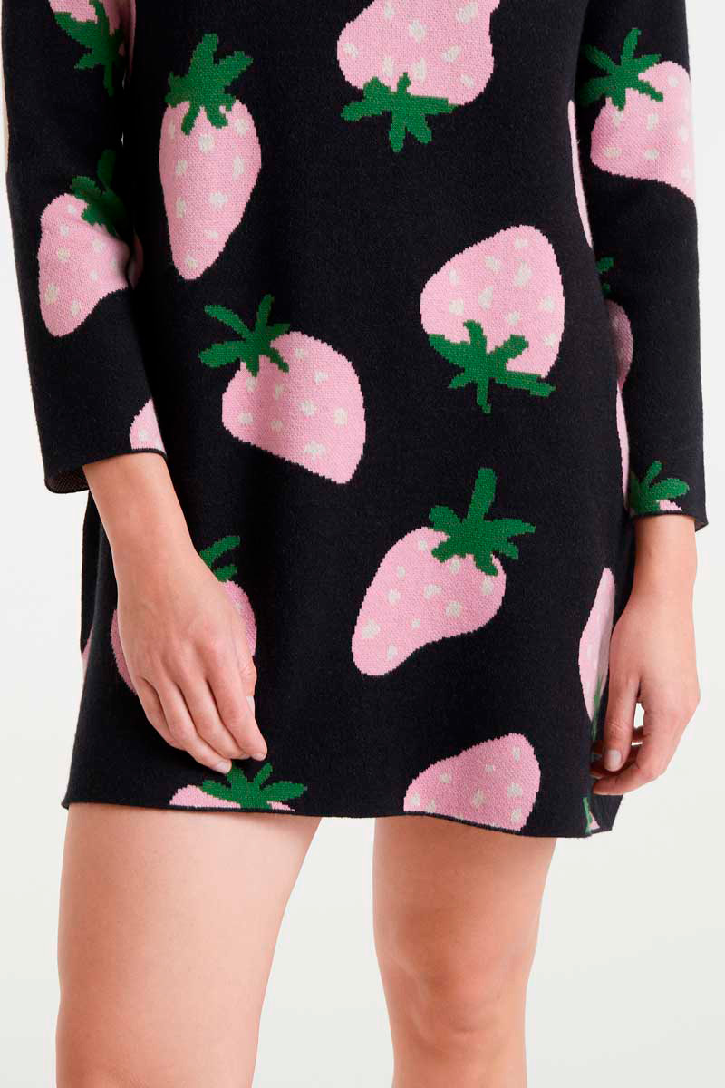 VESTIDO CORTO E PUNTO JACQUARD CON ESTAMPADO MORANGO